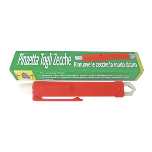 - impugnare la pinza ed afferrare saldamente la zecca, il piu possibile aderente alla cute; premere il pulsante superiore per consentire la presa della zecca e rilasciarlo lentamente; esercitare una delicata rotazione in senso antiorario e tirare leggermente, ma senza strappi, per evitarne la rottura;