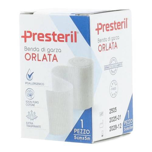 Applicare la fasciatura alla zona interessata esercitando una buona pressione; quindi fissare la benda con rocchetto mediPresteril.