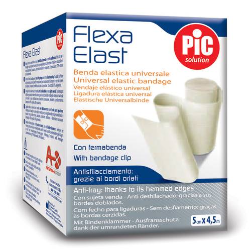 benda elastica universale ad elasticità calibrata. Indicata in traumatologia ed in flebologia, per bendaggi ortopedici compressivi leggeri e per la profilassi delle complicazioni trombotiche del circolo venoso.