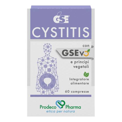 GSE Cystitis Integratore alimentare a base di estratto di semi di Pompelmo e di principi vegetali di Uva ursina, Pilosella, Erica e Ononide, utile per i benefici effetti sull'equilibrio delle funzioni fisiologiche dell'apparato urinario.