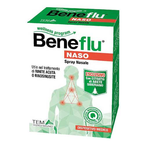 BeneFlu spray nasale è un decongestionante indicato come trattamento coadiuvante di primo impiego in presenza di processi infiammatori quali riniti di diversa origine (virali, batteriche o allergiche), sinusiti e secchezza delle mucose nasali.