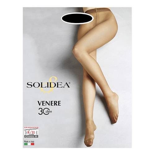 Collant 30 denari, tutto nudo, a maglia liscia. La sobria eleganza di un collant morbido e velato si abbina al benessere della compressione graduata.